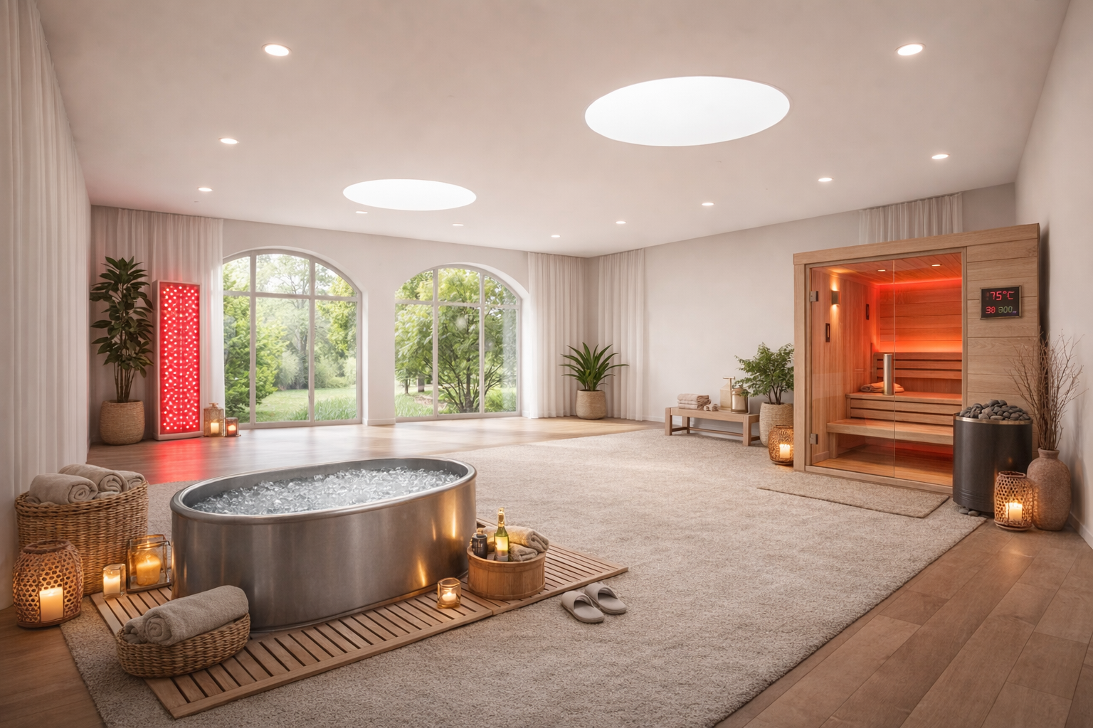 !["Generate a banner image suitable for a premium online store, but with natural lighting. Feature a photorealistic "Luxury" vibe of a modern architectural high end light and welcoming relaxing [wellness room with a dark wood parquet flooring high ceilings and arched windows with black details and linens curtains and cream walls and a ice plunge with ice a sauna and a red light therapy panel] as the clear focus.](http://wellnessrecoveryshop.com/cdn/shop/files/generate-a-banner-image-suitable-for-a-premium-online-store-but-with-natural-lighting-feature-a-photorealistic-luxury-vibe-of-a-modern-architectural-high-end-light-and-welcoming-relax_45215b64-5d78-4049-b162-bd47e3976956.png?v=1768138752&width=1248)